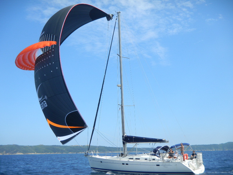 - Seilene ventilerer, det vil si: i kastevind vil overflødig vind slippe ut gjennom spalten i seilet. Dette gjør at seilene kan brukes i sterkere vind enn en spinnaker